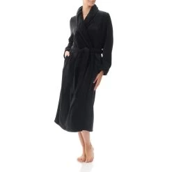 Enjoy the warmth of Luxury Polar fleece in this mid length wrap gown. This wrap gown is the perfect way to stay warm this winter, long sleeves, wrap over front with tie belt, shawl collar and side pockets.